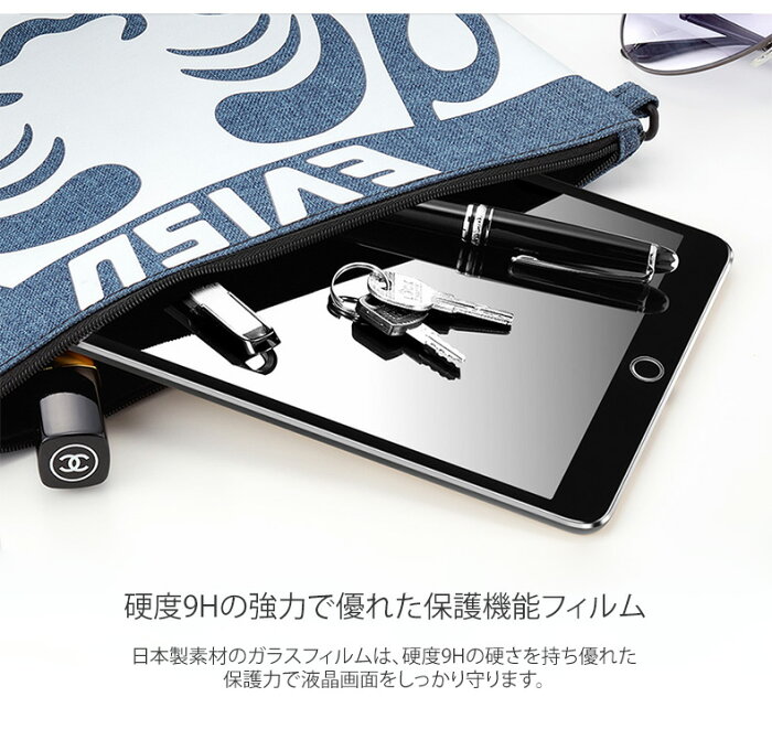 商品紹介 iPad 9.7インチ(2018/2017発売モデル)液晶保護 ガラスフィルム Premium Clear(プレミアムクリア)強化ガラスフィルム 日本製旭硝子素材 硬度9H 飛散防止 気泡ゼロ 指紋付きにくい 貼る枠付き 新型 アイパッド お取り寄せ ●硬度9Hの強力で優れた保護機能フィルム 日本製素材のガラスフィルムは、硬度9Hの硬さを持ち優れた保護力で液晶画面をしっかり守ります。