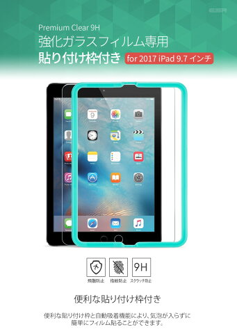 iPad 9.7インチ(2018/2017発売モデル)液晶保護 ガラスフィルム Premium Clear(プレミアムクリア)強化ガラスフィルム 日本製旭硝子素材 硬度9H 飛散防止 気泡ゼロ 指紋付きにくい 貼る枠付き 新型 アイパッド お取り寄せ iPad 9.7インチ(2018/2017)専用 液晶保護 ガラスフィルム ・硬度9Hの強力で優れた保護機能フィルム ・ナノコーティング技術により指紋防止 ・飛散防止 ・自動吸着機能より気泡ゼロ 型番(Janコード):ES10073(4589752990730) ※製品の仕様は改良などのため事前予告なしに変更することがあります。