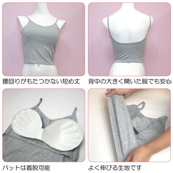 商品名(商品番号): ノンワイヤー バックオープン カップ入り キャミソール (akb-1011) カラー: ・ホワイト・ピンク・サックス・ブルー・グレー・ブラック サイズ: フリー ホック: ホックなし パッド: あり(取り外し可) ストラップ: 取り外し不可 セット内容: 単品ブラ
