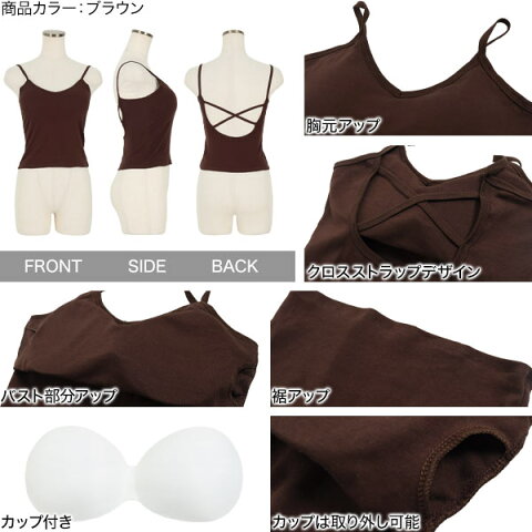 バックオープンカップ付きキャミソール [C5524] レディース トップス キャミ インナー クロスストラップ 綿 デイリー 夏 キャミソール カップ付き おしゃれ シンプル ブラトップ バックシャン カットソー レイヤード 白 黒 ブラウン