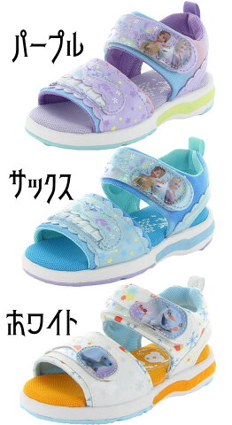 ■商品説明 アナと雪の女王2 女の子 子供靴 キッズ ジュニア 光る靴 サンダル PURPLE(パープル)SAX(サックス)WHITE(ホワイト)ディズニー 「アナと雪の女王2」のLEDを搭載したキッズサンダルです。