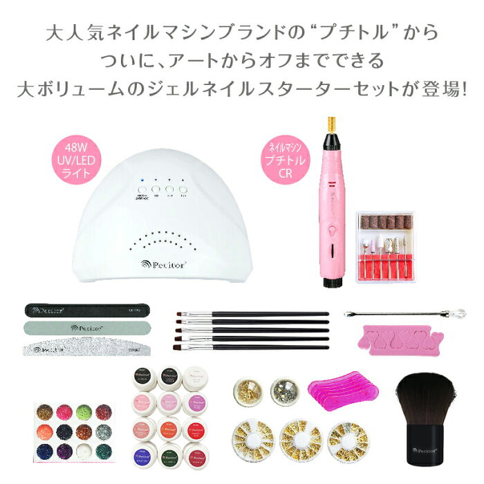 限定価格 スターターキット ジェルネイル オフ マシン ネイルマシン ライト 【プチトル ジェル ネイル スペシャル セット UV LEDライト カラー ベース ノンワイプトップ ダストブラシ ブラシ ネイルパーツ】<Petitor CR Gel Nail SPECIAL SET><セルフ>