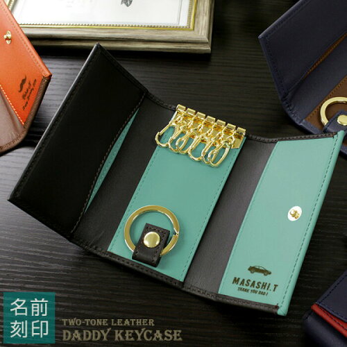 【 名入れ ギフト キーケース 本革 メンズ 】Daddy2色使い本革キーケース【 プレゼント おしゃれ 名前入り 本革 プレゼント カップル 記念日 誕生日祝い 男性 父 女性 レディース 彼氏 彼女 お揃い 還暦祝い 】