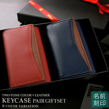【名入れ ペアギフト キーケース 結婚祝い 贈り物 】【送料無料】ペアギフトセット 2色使い本革キーケース【記念日 両親 ギフト プレゼント カップル 記念日 誕生日 男性 父 女性 メンズ レディース 彼氏 彼女 お揃い 還暦祝い 】