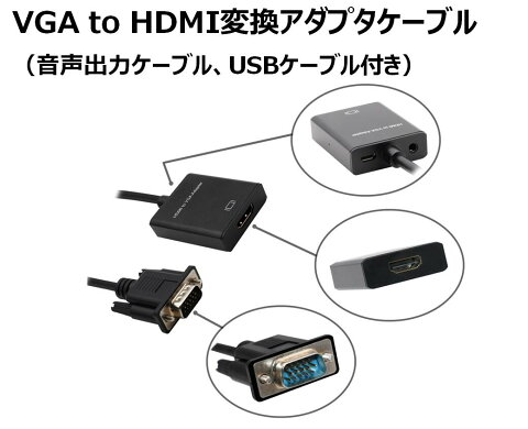VGA HDMI 変換ケーブル ( VGA → HDMI 方向 ) 音声出力ケーブル 50cm USB電源付 変換アダプタ 1080P対応 モニター TVへVGA→HDMI変換アダプタケーブル(音声出力ケーブル、USBケーブル付き)です。