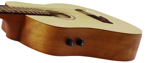 また、ボリュームとトーンのパッシブコントロールを搭載したエレアコモデルで、アンプに接続して音を出すことが可能です。
